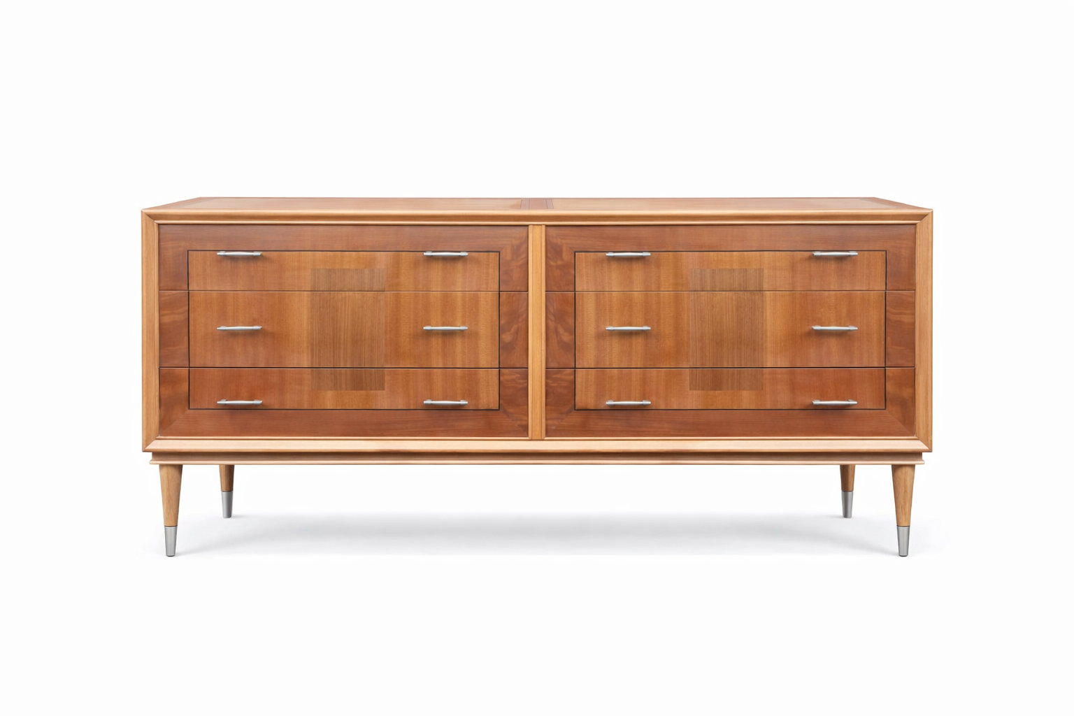 herrajes de bronce pulidos y pintados en gris plata, haciendo juego con los regatones de las patitas, 6 amplios cajones con lugar de guardado.