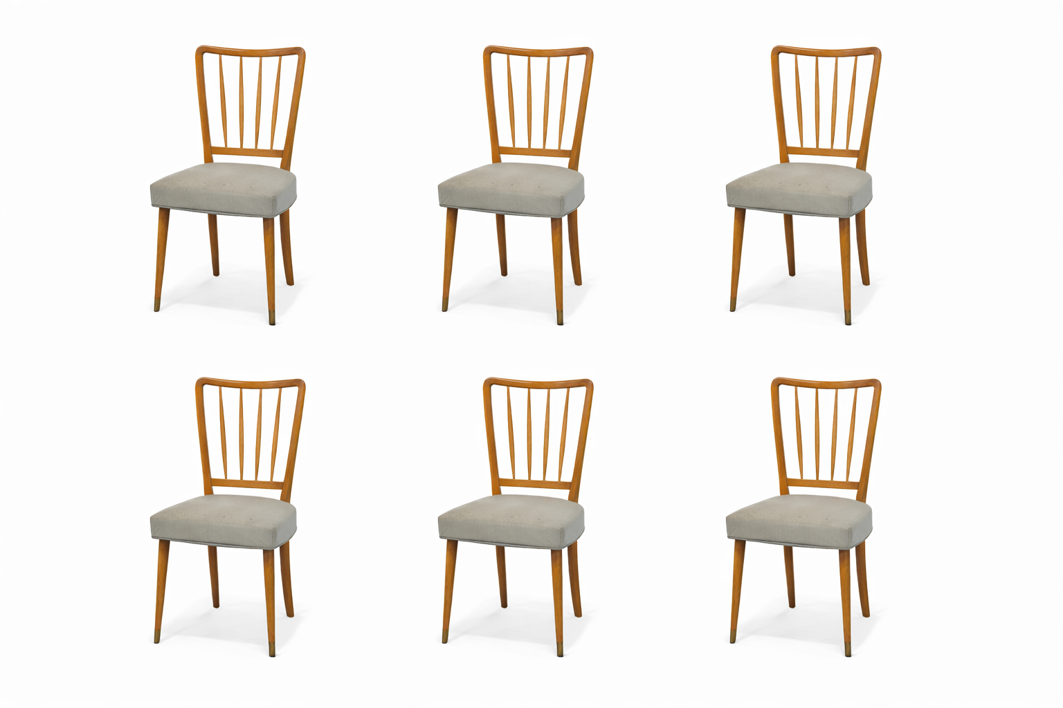 Set de 6 sillas de estilo danés. Son de madera de guatambu, se entregan encoladas, lavadas e hidrolaqueadas.