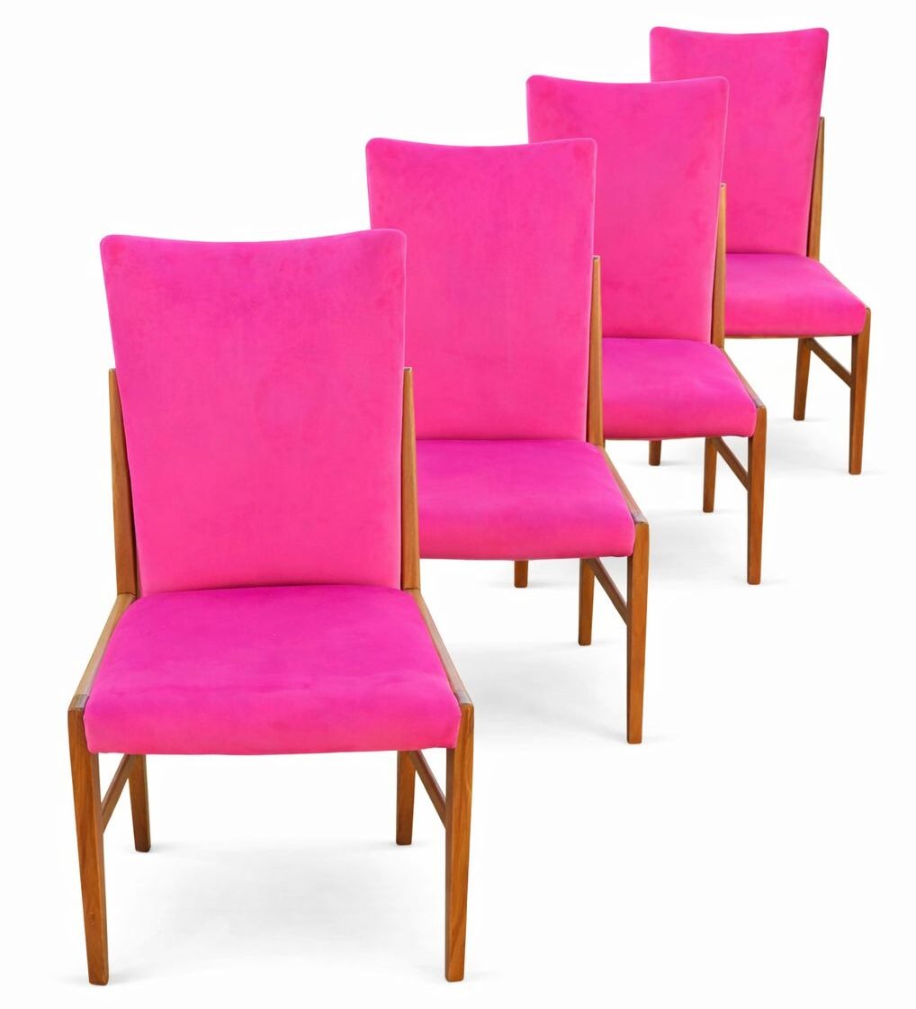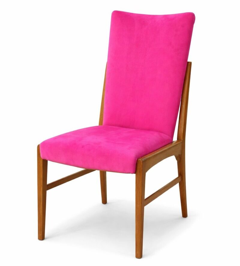 Están tapiazadas en pana color rosa chicle la tela es anti mancha y anti desgarro