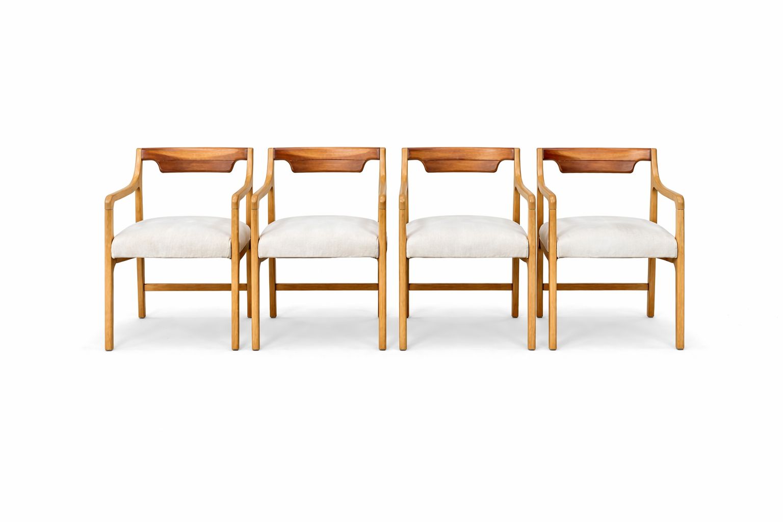 Set de 4 sillones cabeceros en madera maciza de Guatambu, con su respaldo en madera de cedro.